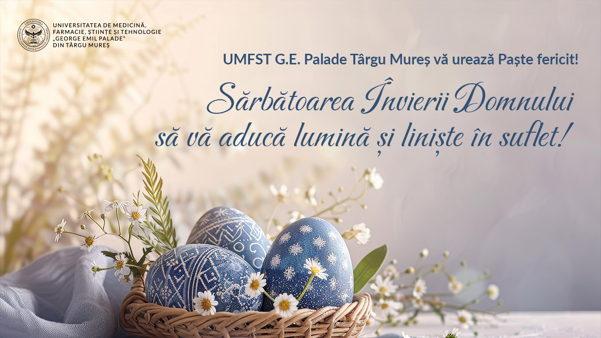 Cu ocazia Sărbătorilor Pascale, Universitatea de Medicină, Farmacie, Științe și Tehnologie „George Emil Palade” din Târgu Mureș transmite urări de bine și sănătate tuturor membrilor comunității academice – cadre didactice,...