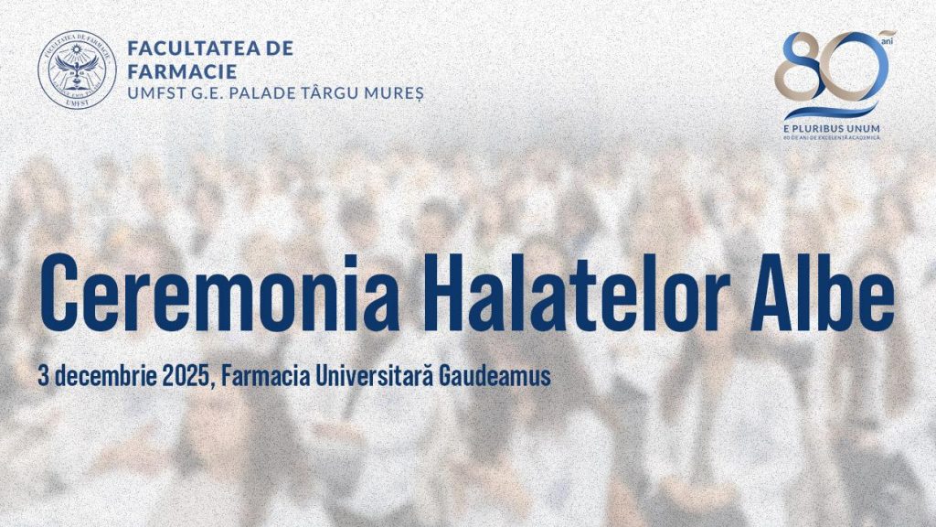 Ceremonia Halatelor Albe dedicată studenților Facultății de Farmacie va avea loc mâine, 3 decembrie 2025, la Farmacia Universitară Gaudeamus.