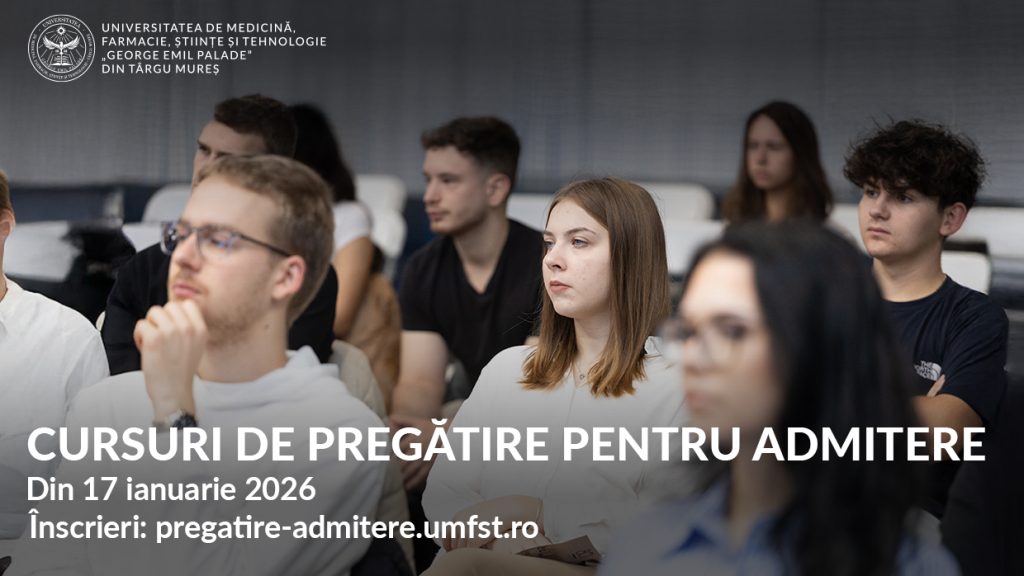 Începând din 17 ianuarie 2026, UMFST G.E. Palade Târgu Mureș organizează cursuri de pregătire la biologie, chimie și chimie organică pentru viitorii candidaţi la admitere la Facultatea de Medicină, Facultatea de Medicină Dentară şi la Facultatea de Farmacie.
