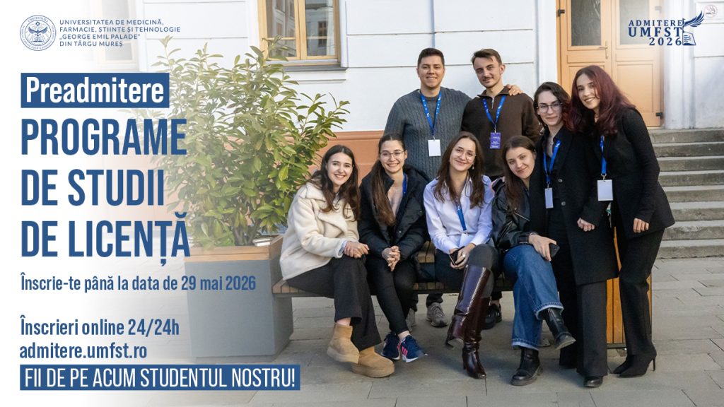Înscrierile pentru preadmiterea la UMFST G.E. Palade Târgu Mureș se realizează până la data de 29 mai 2026 prin intermediul platformei admitere.umfst.ro.