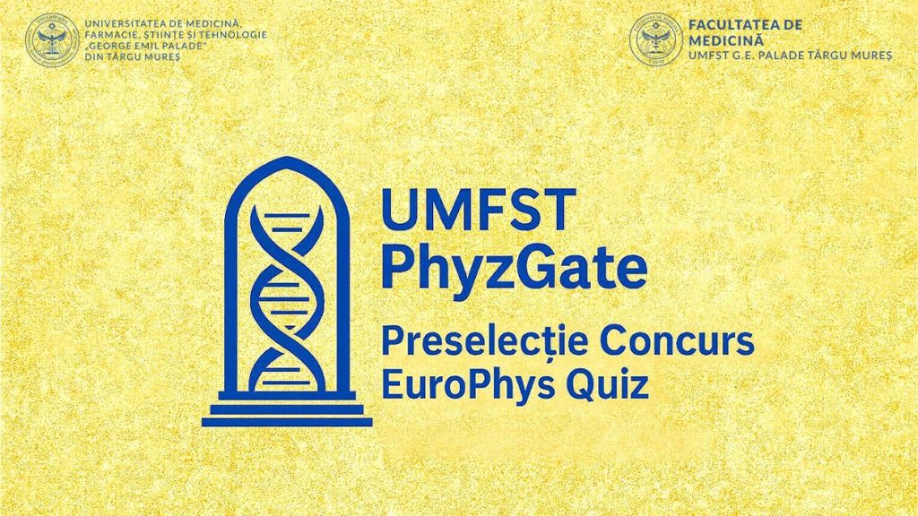 Facultatea de Medicină, UMFST G.E. Palade Târgu Mureș, organizează, în perioada 8-9 ianuarie 2026, preselecții pentru studenții care vor reprezenta universitatea la Concursul Național de Fiziologie – EuroPhys Quiz, care se va desfășura în perioada 8-9 mai 2026, la Cluj Napoca.