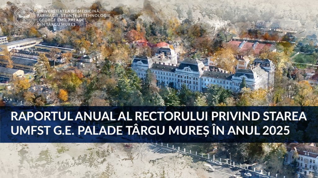 Prezentarea Raportului anual al Rectorului privind starea Universității de Medicină, Farmacie, Științe și Tehnologie „George Emil Palade” din Târgu Mureș în anul 2025 și prezentarea Raportului asociațiilor studențești pentru anul 2025 vor avea loc marți, 17 martie 2026, ora 12.00, în Sala Senatului, în cadrul ședinței deschise a Senatului Universității.