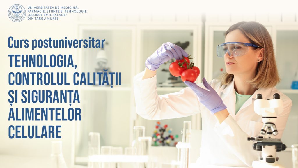 UMFST G.E. Palade Târgu Mureș anunță organizarea, în perioada 9-13 februarie 2026, a Cursului postuniversitar „Tehnologia, controlul calității și siguranța alimentelor celulare”.