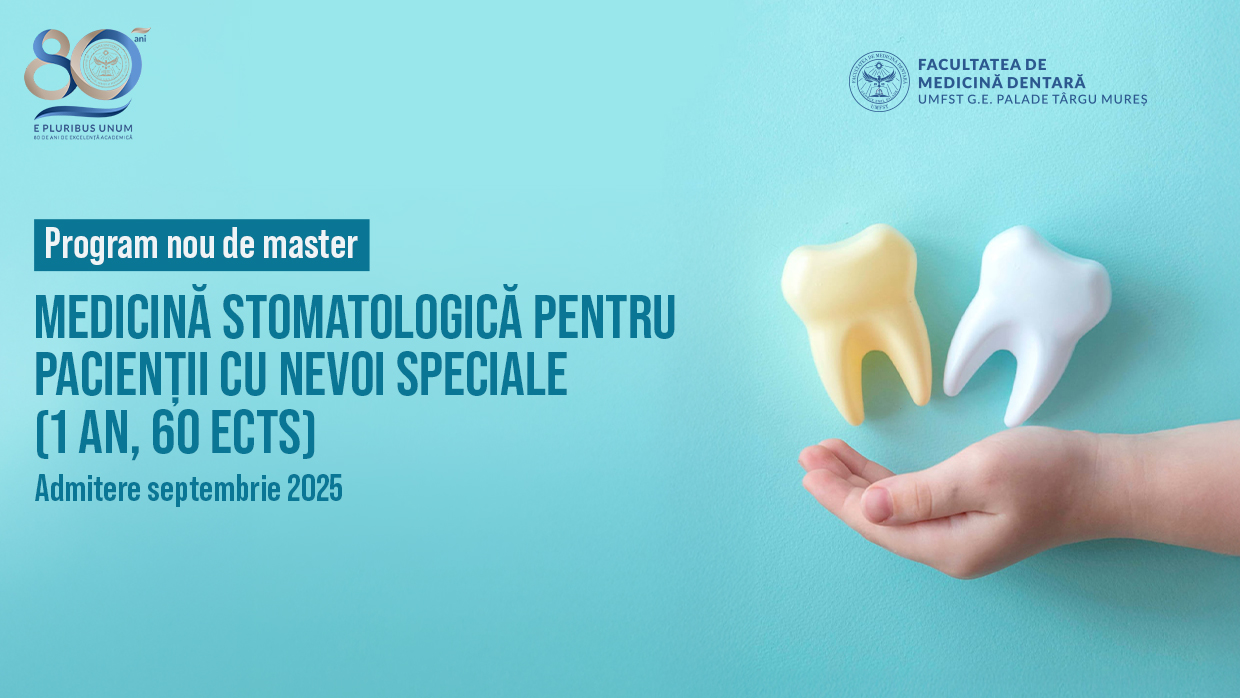 Facultatea de Medicină Dentară, UMFST G.E. Palade Târgu Mureș, organizează, începând cu anul universitar 2025-2026, un nou program de studii universitare de masterat denumit Medicină stomatologică pentru pacienții cu nevoi speciale.