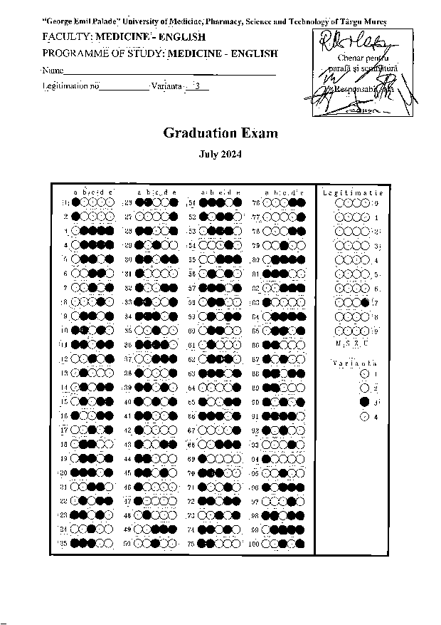 The final version of the license thesis needs to be submitted to the following email address (decanat.medicina.en@umfst.ro) until the date of 25th July 10 AM.