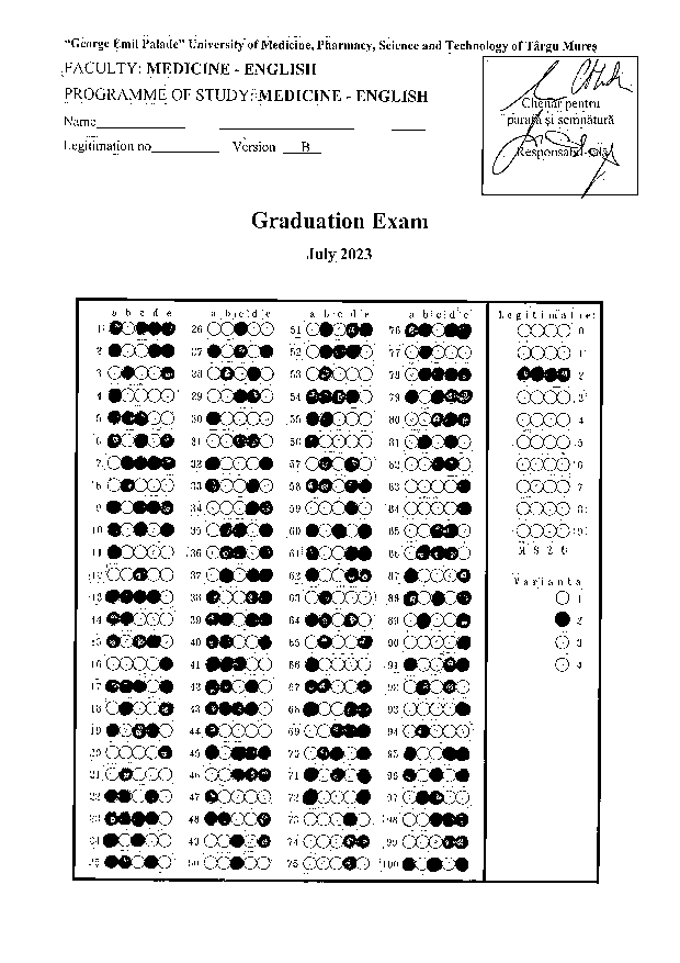 The Leading Board of the University and The Dean's office of the Faculty of Medicine in English has decided to schedule a new session of oral presentation of the License thesis for the 20th of February at 12:00 PM (room Forensic Medicine).
