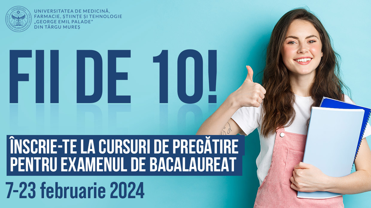 Facultatea de Științe și Litere „Petru Maior”, UMFST G.E. Palade Târgu Mureș, organizează cursuri de pregătire pentru examenul de Bacalaureat, la disciplinele Română, Matematică, Istorie, Geografie, Fizică, Chimie, Biologie, Engleză și Informatică.