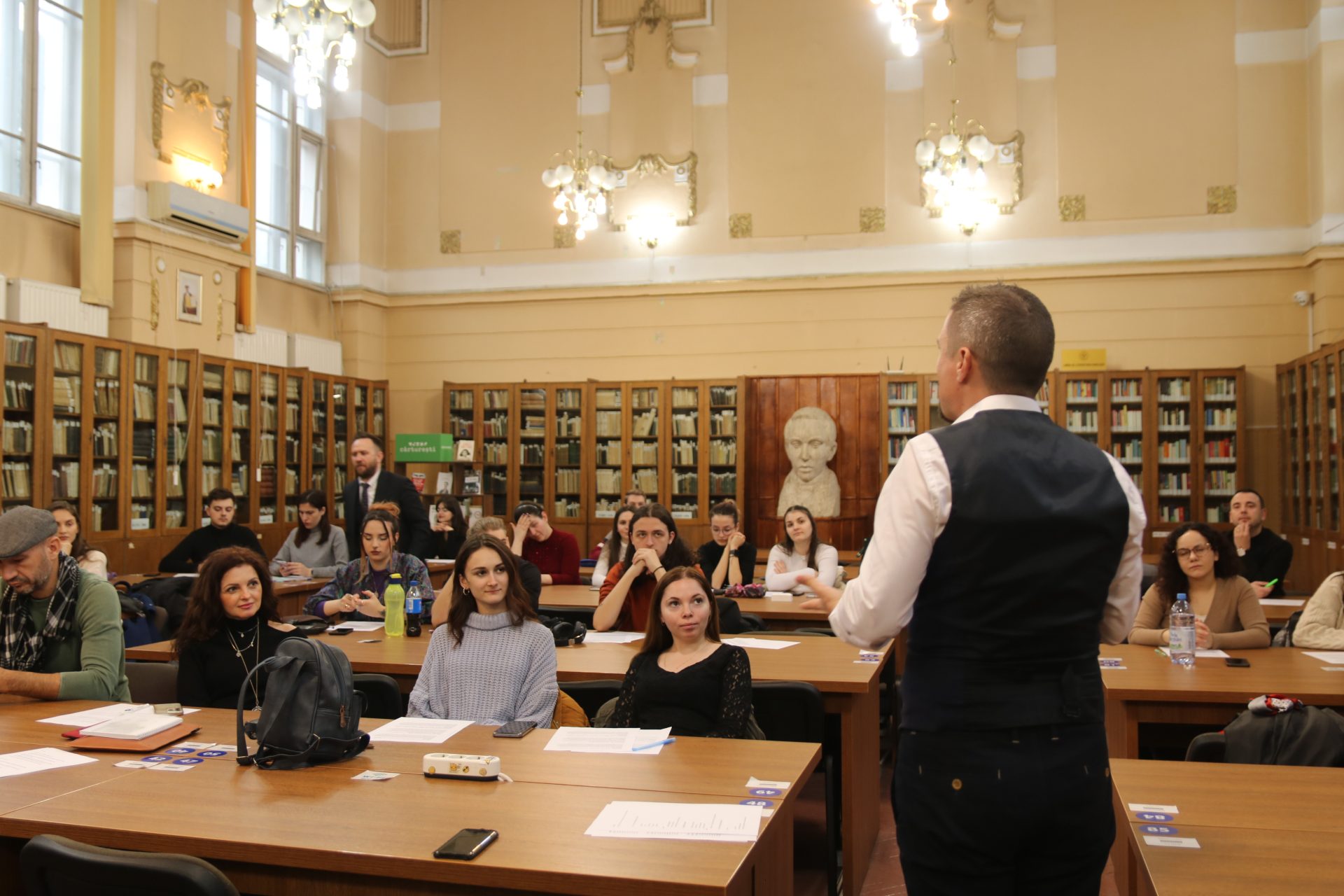 Studenții UMFST G.E. Palade Târgu Mureș au participat joi, 18 ianuarie 2024, la un atelier interactiv de voce, dicție și oratorie susținut de Andrei Țigănaș, sculptor de voci, om de comunicare, fost jurnalist de presă scrisă, radio și TV.