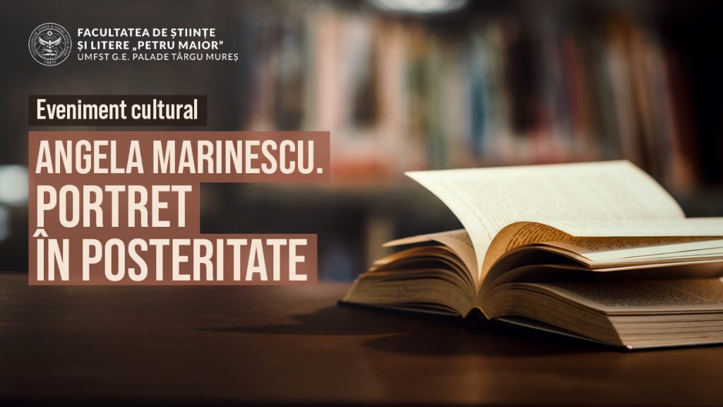 Centrul de Cercetări Filologice, Istorice și Culturale, Facultatea de Ştiinţe şi Litere „Petru Maior” şi Şcoala Doctorală de Litere, Ştiinţe Umaniste şi Aplicate, UMFST G.E. Palade Târgu Mureș, organizează joi, 7 noiembrie 2024, ora 16.00, în sala R39 a facultății (str. Nicolae Iorga, nr. 1), evenimentul cultural intitulat „Angela Marinescu. Portret în posteritate”.