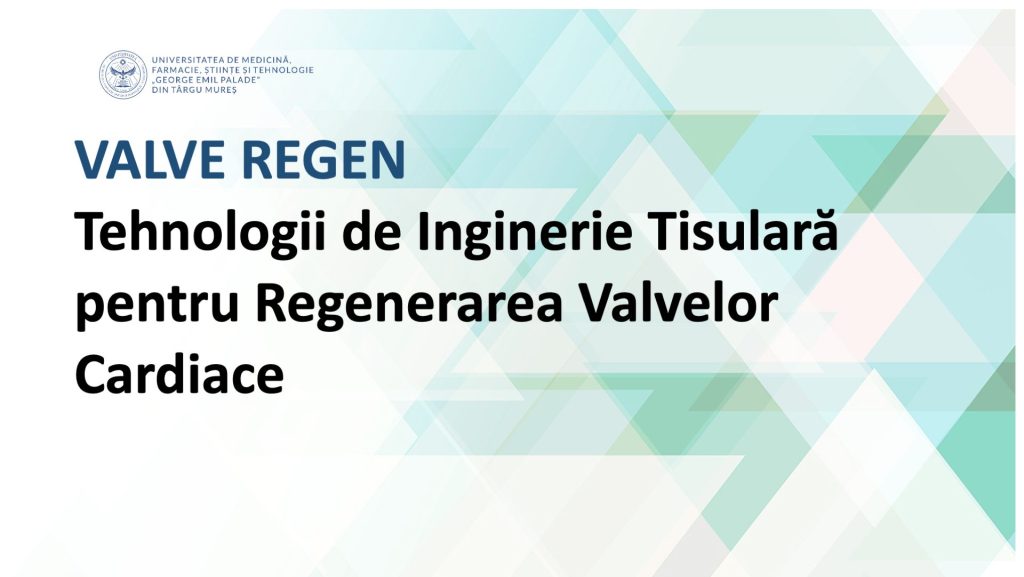 Actualizare la data de 04.03.2021La data de 04.03.2021 s-a finalizat implementarea proiectului „Tehnologii de inginerie tisulară pentru regenerarea valvelor cardiace” (VALVE-REGEN).