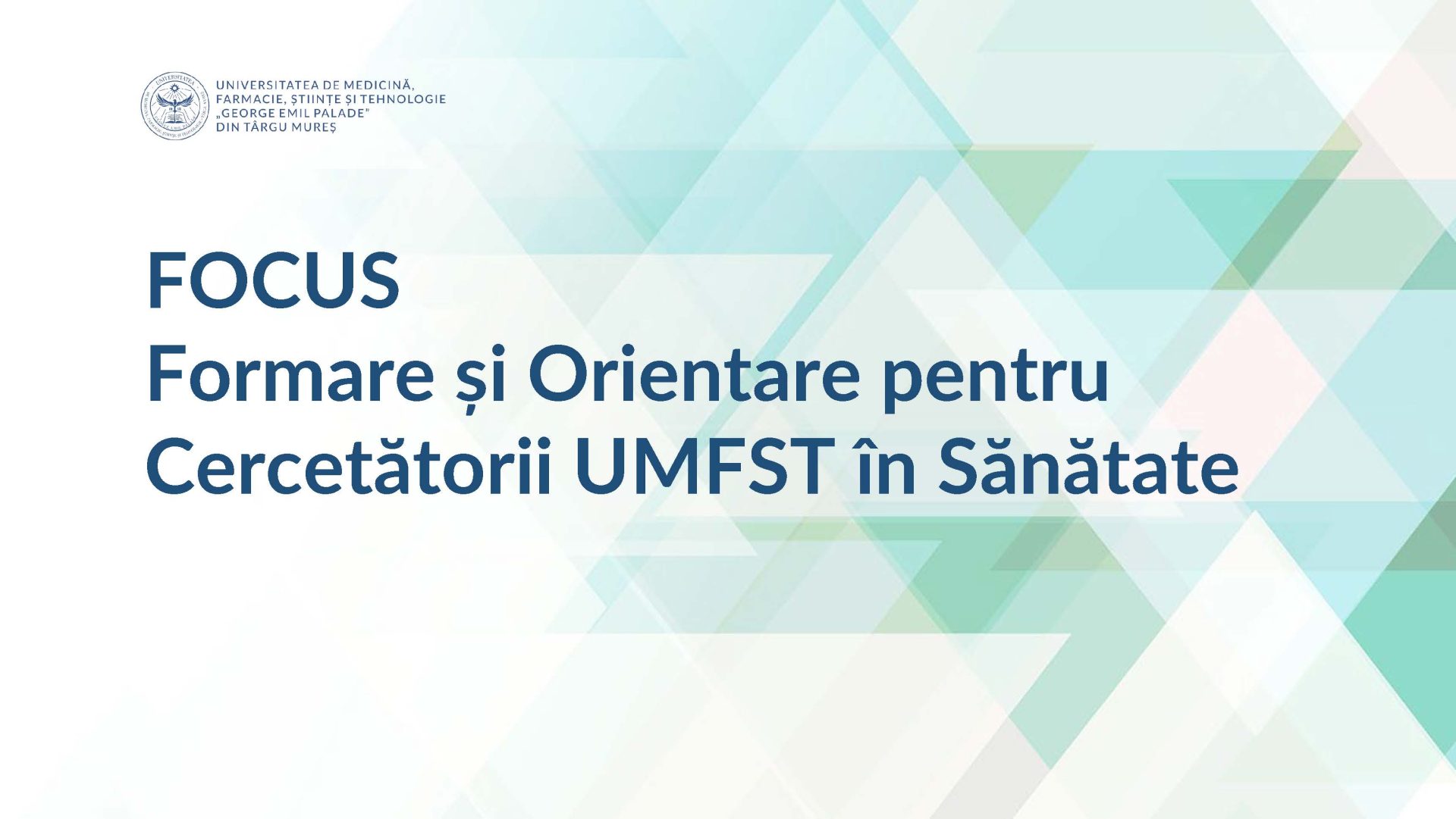 FOCUS: Formare și Orientare pentru Cercetătorii UMFST în SănătateTitlu proiect „FOCUS: Formare și Orientare pentru Cercetătorii UMFST în Sănătate” Programul Programul Sănătate Titlu...