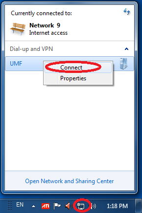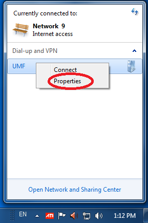 Faceti click dreapta pe conexiunea UMF si selectati "Properties"